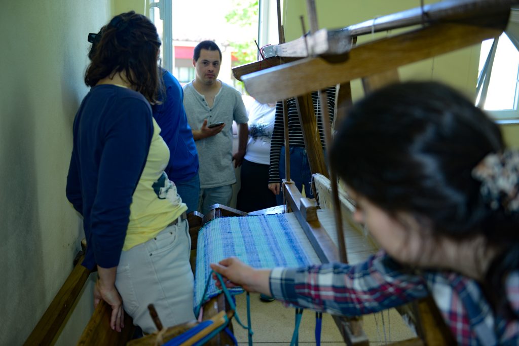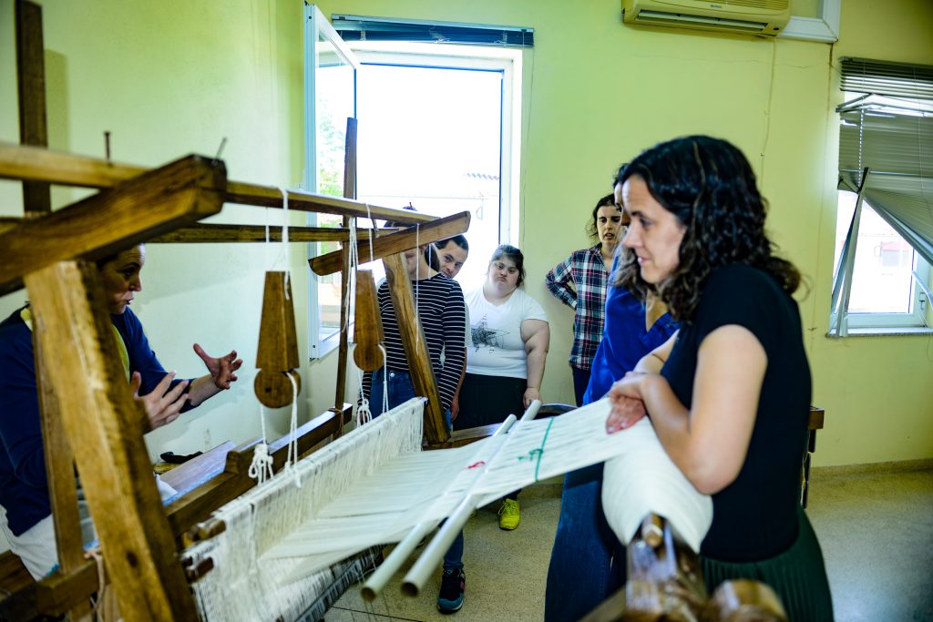 Neste workshop estiveram alguns dos jovens que integram o CACI – Centro de Atividades e Capacitação para a Inclusão, da ASSB, jovens com experiência com o tear por terem um em contexto de CACI.