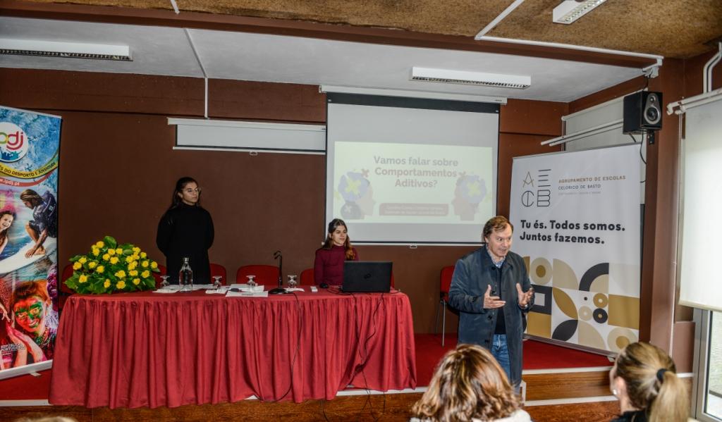 Durante a sessão, as psicólogas Catarina Campos e Carolina Cunha, do Gabinete de Saúde Juvenil de Braga, deram a conhecer aos jovens o que são comportamentos aditivos, principais dependências dos jovens em Portugal, o que leva ao consumo dessas substâncias, quais as ferramentas alternativas e muito mais numa palestra interativa com participação dos jovens do 10ºano.